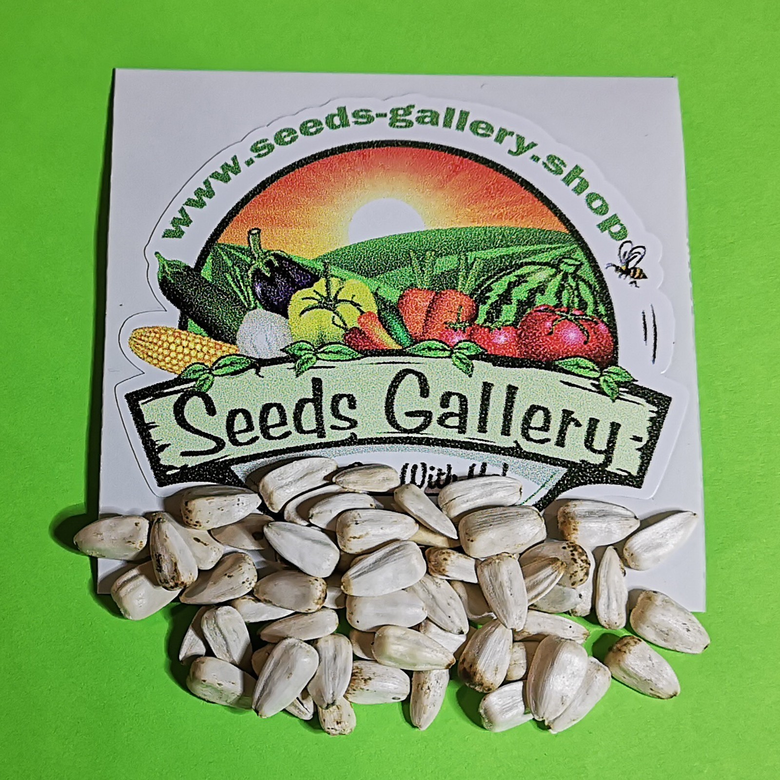 A true giant reaching up to 400cm (14ft) tall with one of the largest flowering white sunflower seed heads available which can achieve up to 50cm (19in) across. The seeds are one of the largest available for Helianthus (white sunflower).